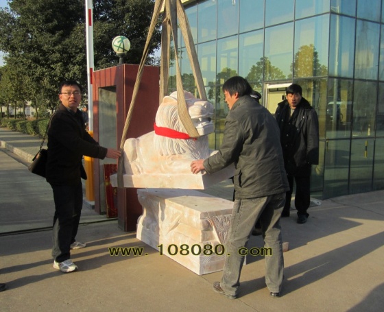 漢白玉石獅子在擺放的時(shí)候,...