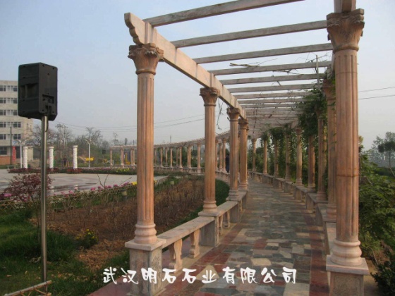 晚霞紅石雕亭子